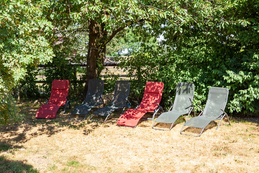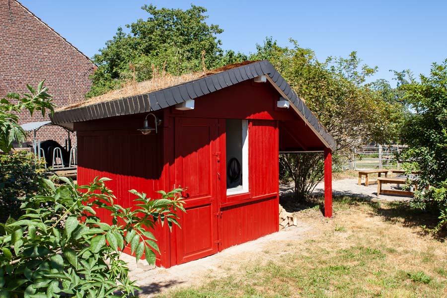 Auf dem Gelände befinden sich neben den großen Spiel- und Weidewiesen der Geräteschuppen, eine Liegewiese mit großzügigem Grillplatz, ein Wohnwagen und ein Swimming-Pool für die Sommermonate.