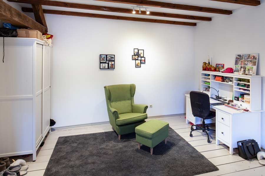 Die zweite Verselbstständigungs-Wohnung für eine Person hat eine Wohnfläche von 50qm. Auf einer Ebene im Erdgeschoss befinden sich ein Zimmer, die Küche, Diele und ein Badezimmer.